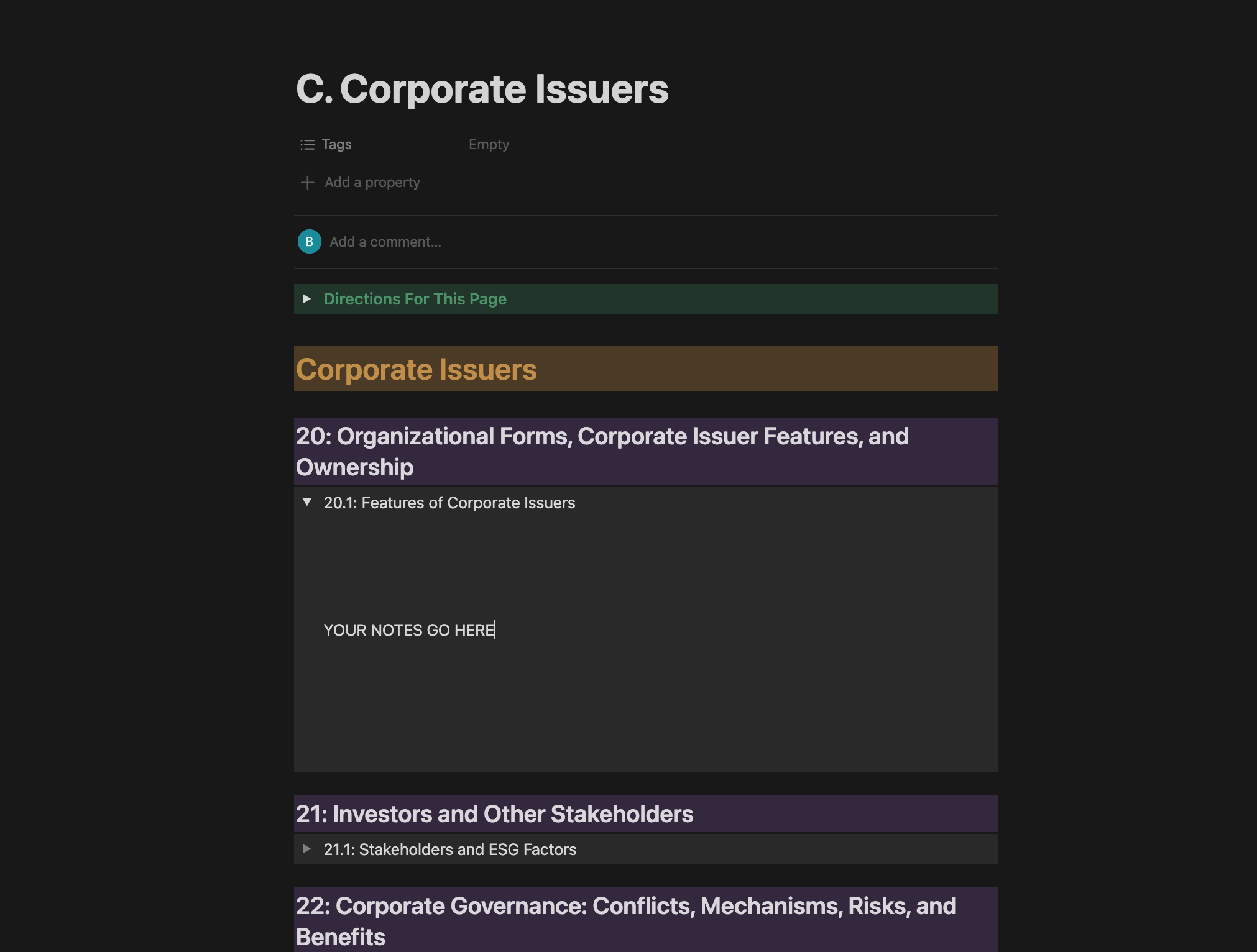 It's important to note that this is just a TEMPLATE for your notes. This product does not contain any actual notes on the CFA L1 material. It is simply a skeleton that you can use to fill in with YOUR notes.