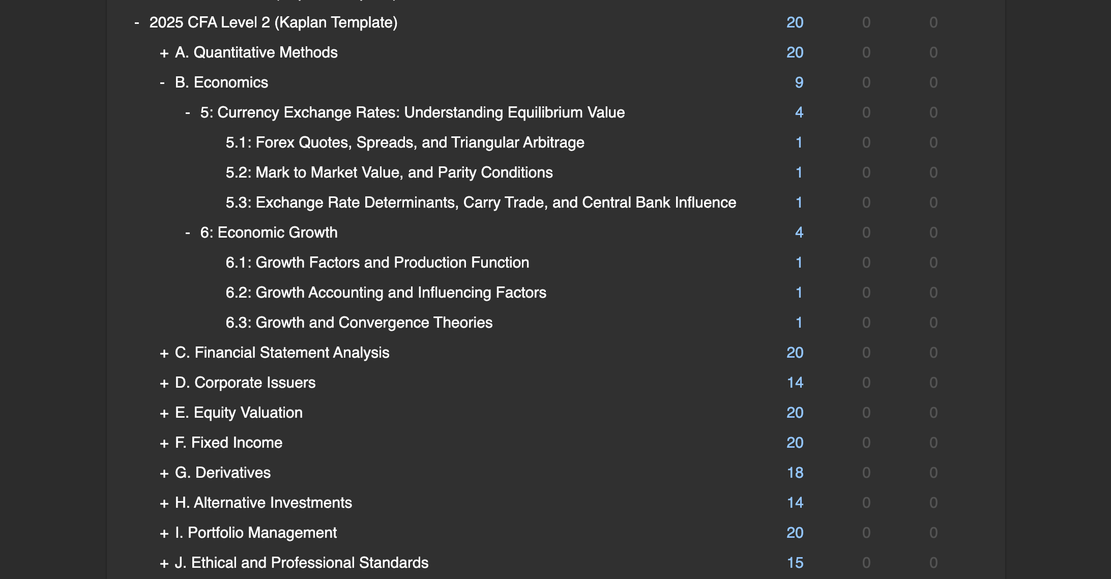 When you start to create your flashcards, you can create cards within the Modules, such as 1.1, 1.2, 1.3. This is how I did it when I studied for level 1.