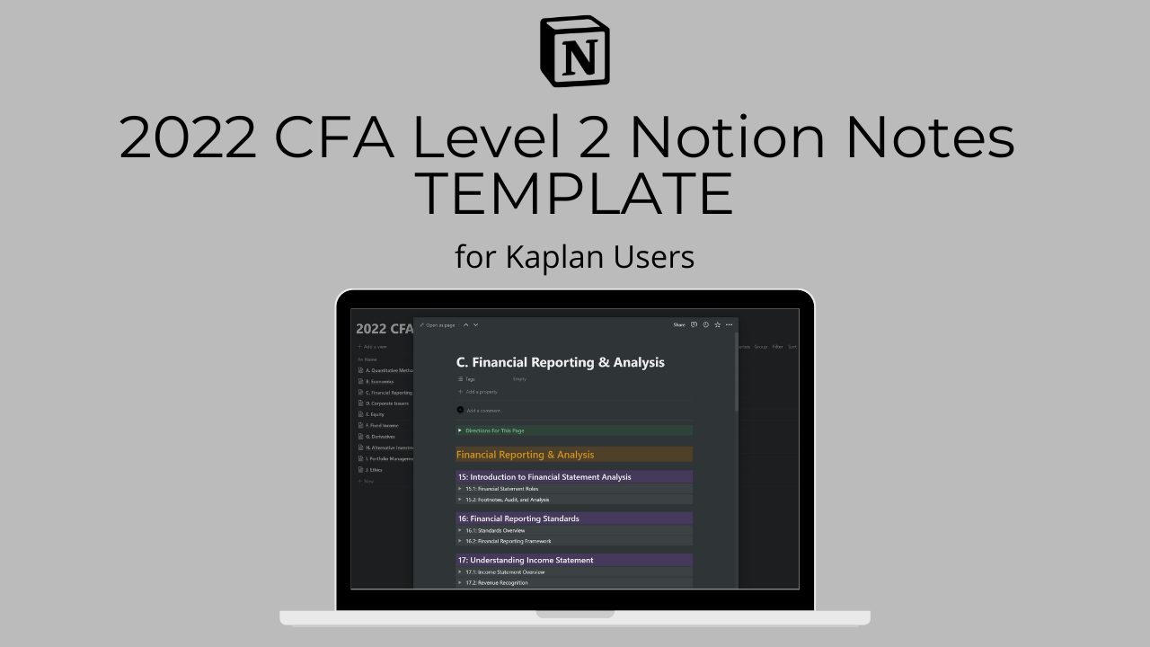 It's important to note that this is just a TEMPLATE for your notes. This product does not contain any actual notes on the CFA L2 material. It is simply a skeleton that you can use to fill in with YOUR notes.