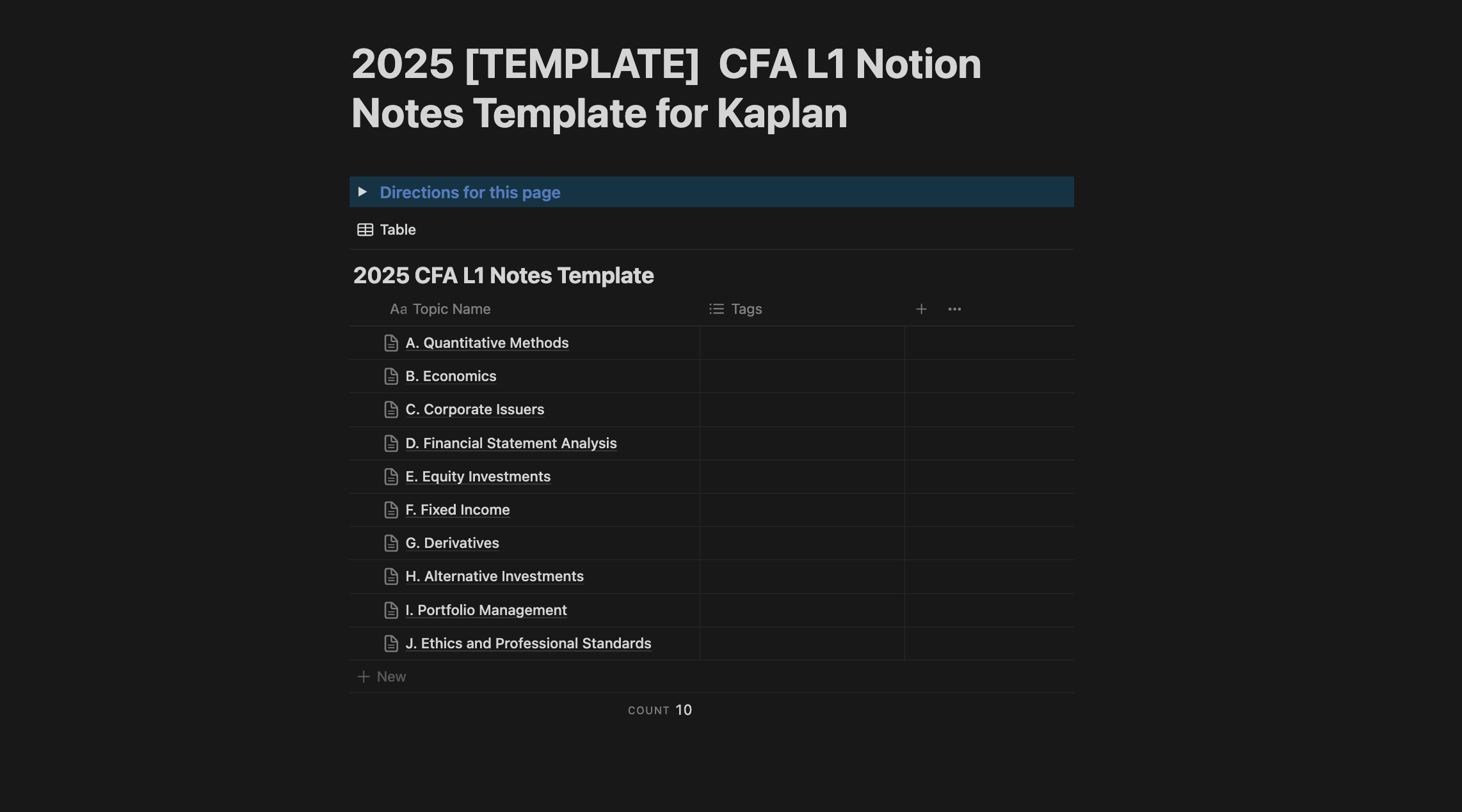 I personally used Kaplan for Level 1, so I am familiar with it, and this template is set up for those who are using Kaplan as their third-party test prep provider.